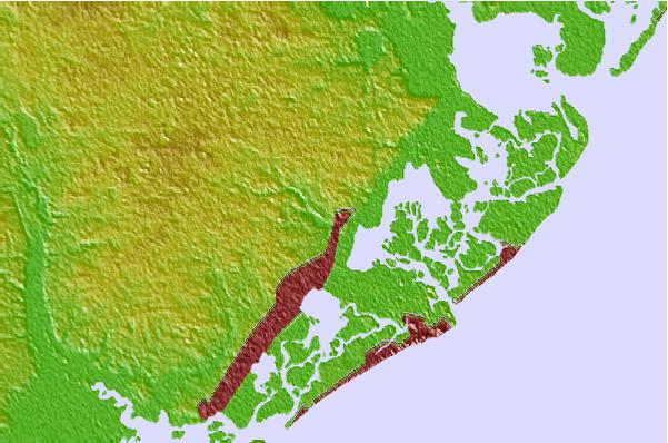 Use this relief map to navigate to tide stations, surf breaks and cities that are in the area of Absecon, Absecon Creek, US Highway 30 bridge, New Jersey.