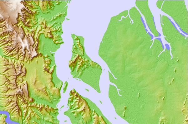 Use this relief map to navigate to tide stations, surf breaks and cities that are in the area of Adolphus Island, Australia.
