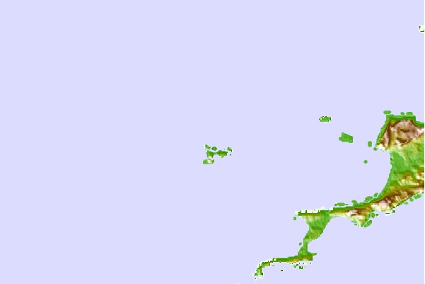 Use this relief map to navigate to tide stations, surf breaks and cities that are in the area of Adugak Islands, Umnak Island, Alaska.