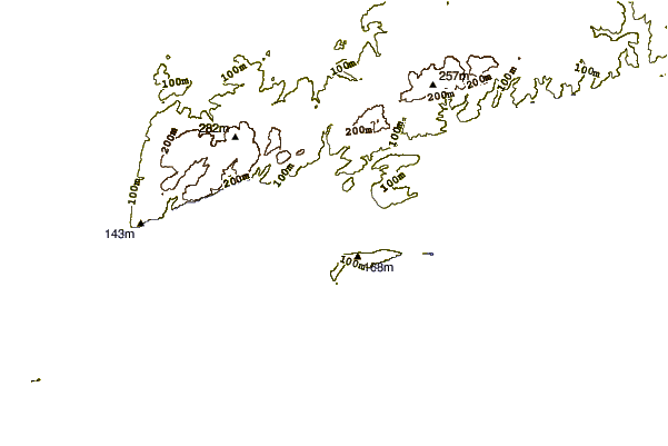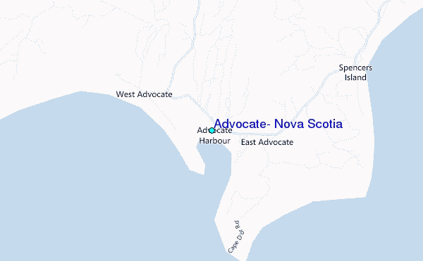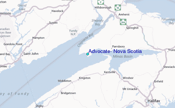 Use this relief map to navigate to tide stations, surf breaks and cities that are in the area of Advocate, Nova Scotia.