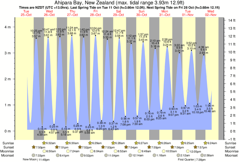 Tide chart for Ahipara BayShowing low and high tide times for the next 30 days at Ahipara Bay. Tide Times are NZDT (UTC +13.0hrs).
