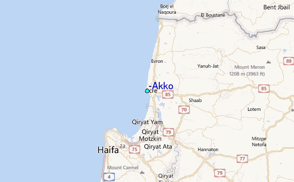 Use this relief map to navigate to tide stations, surf breaks and cities that are in the area of `Akko.