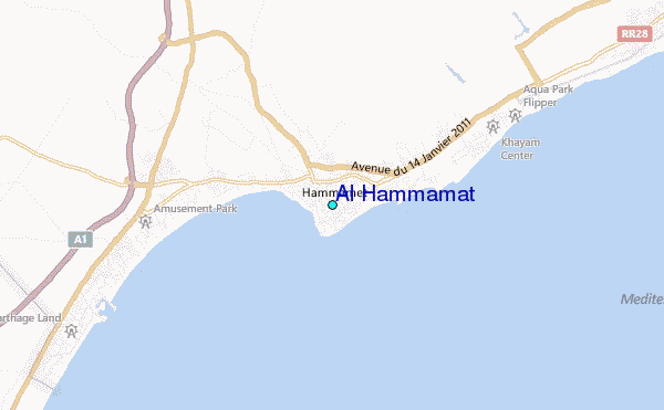 Use this relief map to navigate to tide stations, surf breaks and cities that are in the area of Al Hammamat.