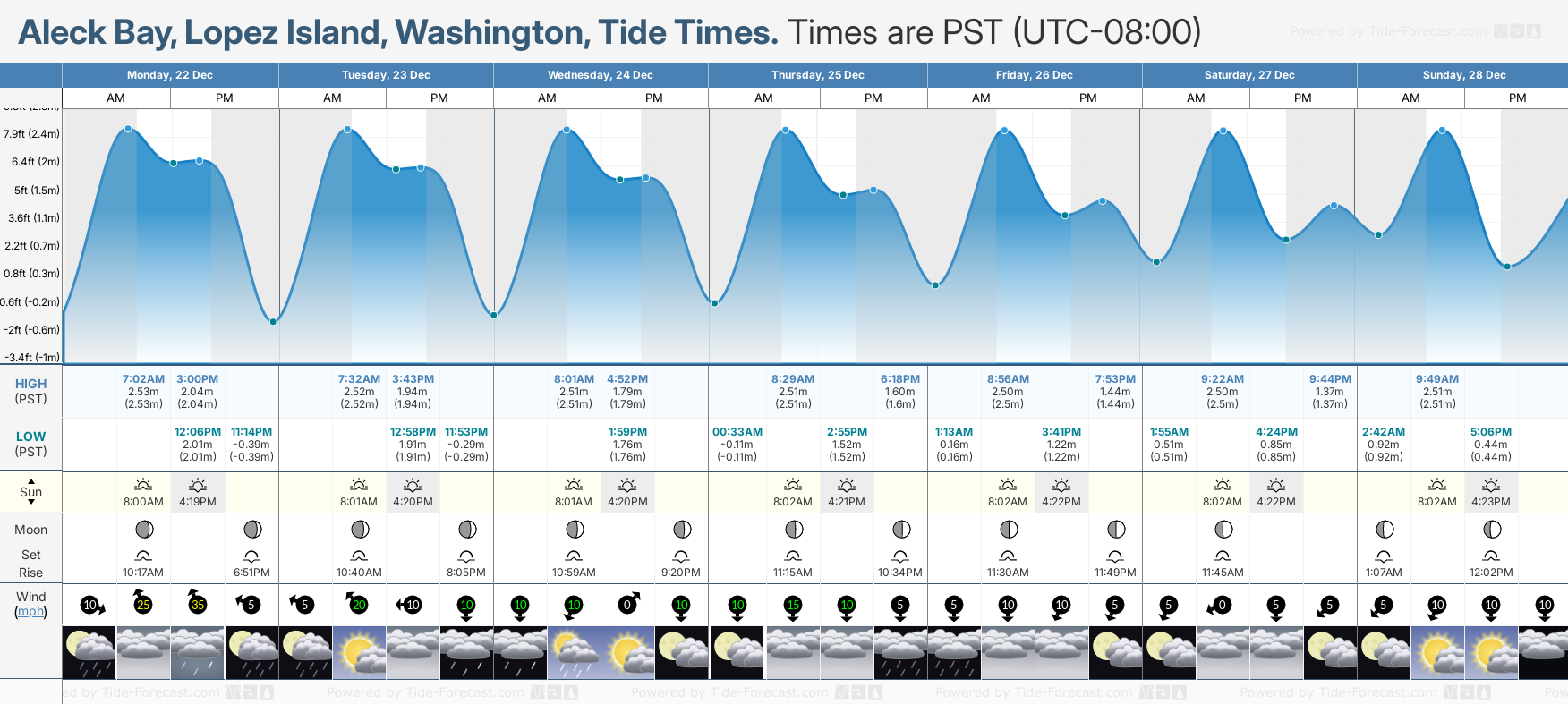 Tide Times for Aleck Bay, Lopez Island (tomorrow): Thursday 25 December 2025