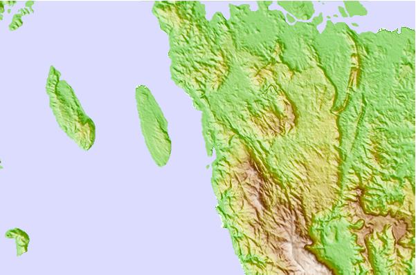 Use this relief map to navigate to tide stations, surf breaks and cities that are in the area of Alegria.