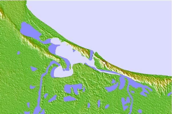 Use this relief map to navigate to tide stations, surf breaks and cities that are in the area of Alvarado, Veracruz, Mexico.