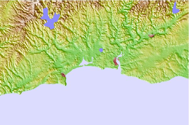 Use this relief map to navigate to tide stations, surf breaks and cities that are in the area of Alvor.