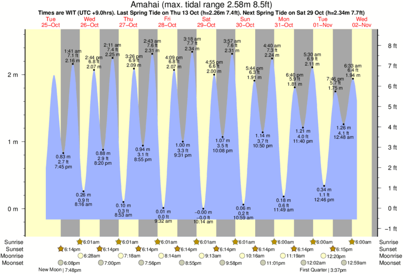 December and January Tide charts for Amahai: The tide charts below show the height, time and date of high and low tides for the next 30 days.