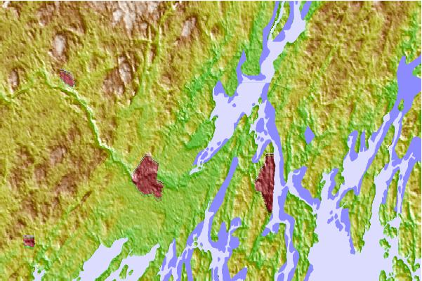 Use this relief map to navigate to tide stations, surf breaks and cities that are in the area of Androscoggin River entrance, Maine.
