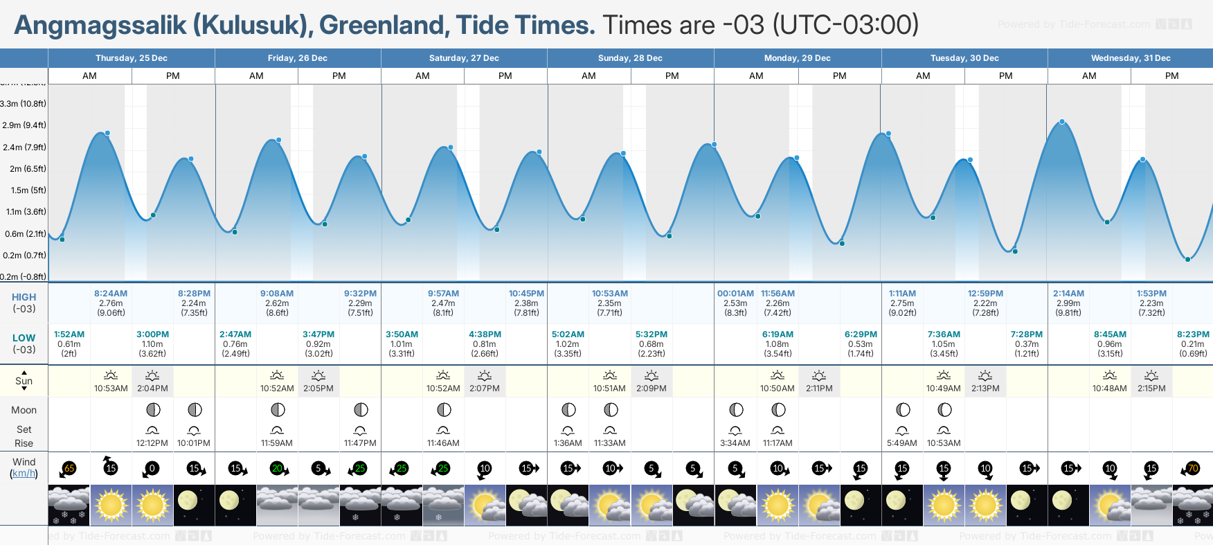 Tide Times for Angmagssalik (Kulusuk) (tomorrow): Thursday 25 December 2025