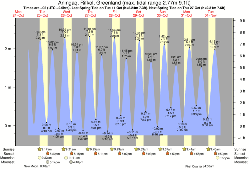 Tide chart for Aningaq, RifkolShowing low and high tide times for the next 30 days at Aningaq, Rifkol. Tide Times are -03 (UTC -3.0hrs).