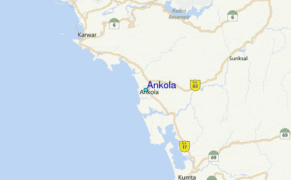 Use this relief map to navigate to tide stations, surf breaks and cities that are in the area of Ankola.