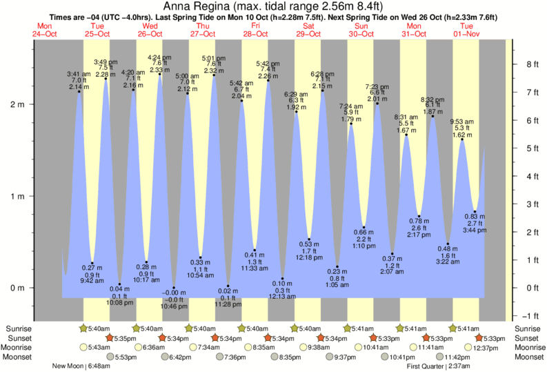 Tide chart for Anna ReginaShowing low and high tide times for the next 30 days at Anna Regina. Tide Times are -04 (UTC -4.0hrs).