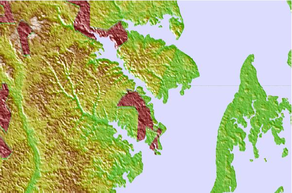 Use this relief map to navigate to tide stations, surf breaks and cities that are in the area of Annapolis, Maryland.
