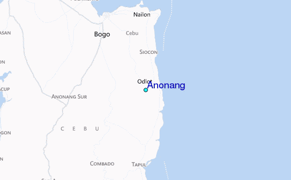 Use this relief map to navigate to tide stations, surf breaks and cities that are in the area of Anonang.