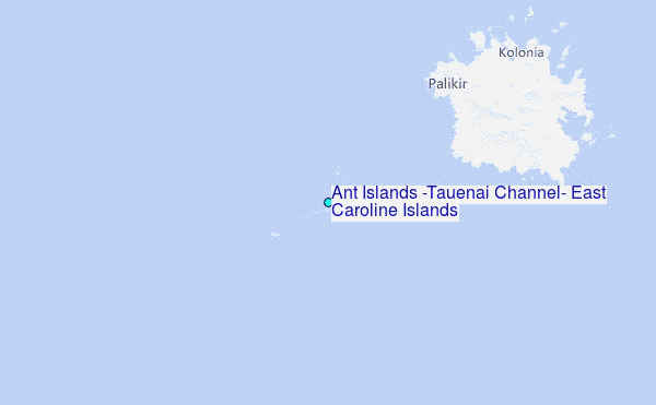 Use this relief map to navigate to tide stations, surf breaks and cities that are in the area of Ant Islands (Tauenai Channel), East Caroline Islands.
