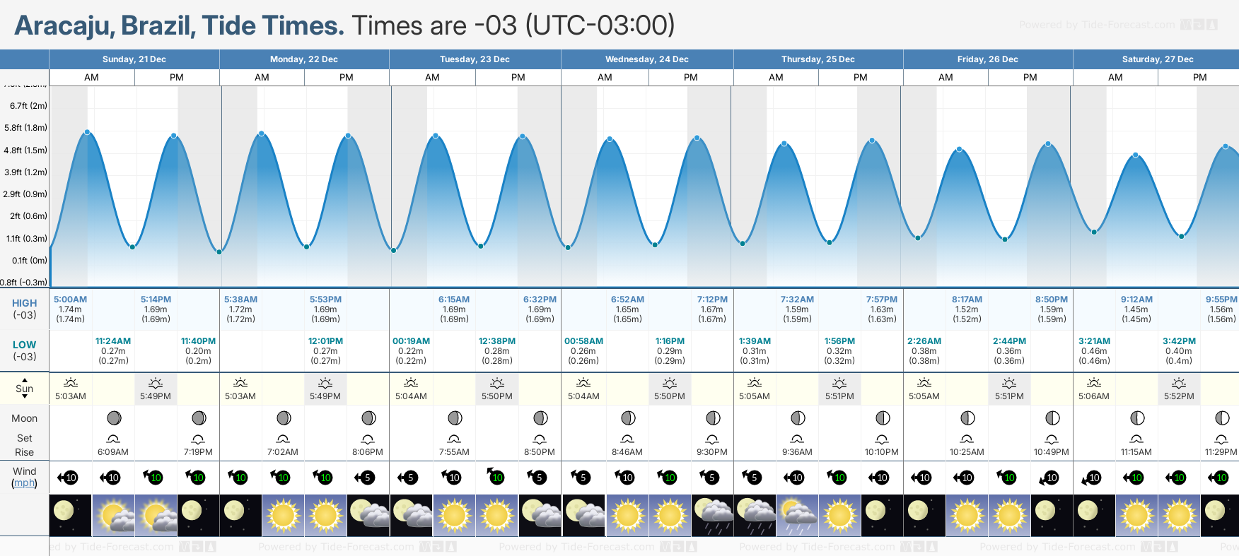 NOTE: Use of this site for Aracaju, Brazil tide times is subject to our terms.