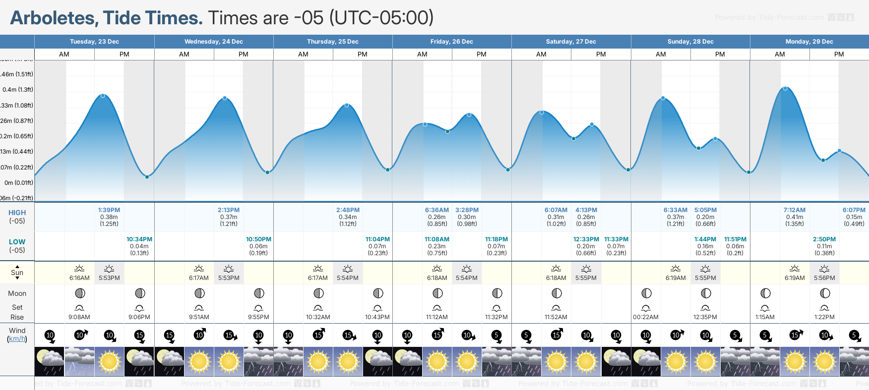 Tide Times for Arboletes (tomorrow): Tuesday 23 December 2025