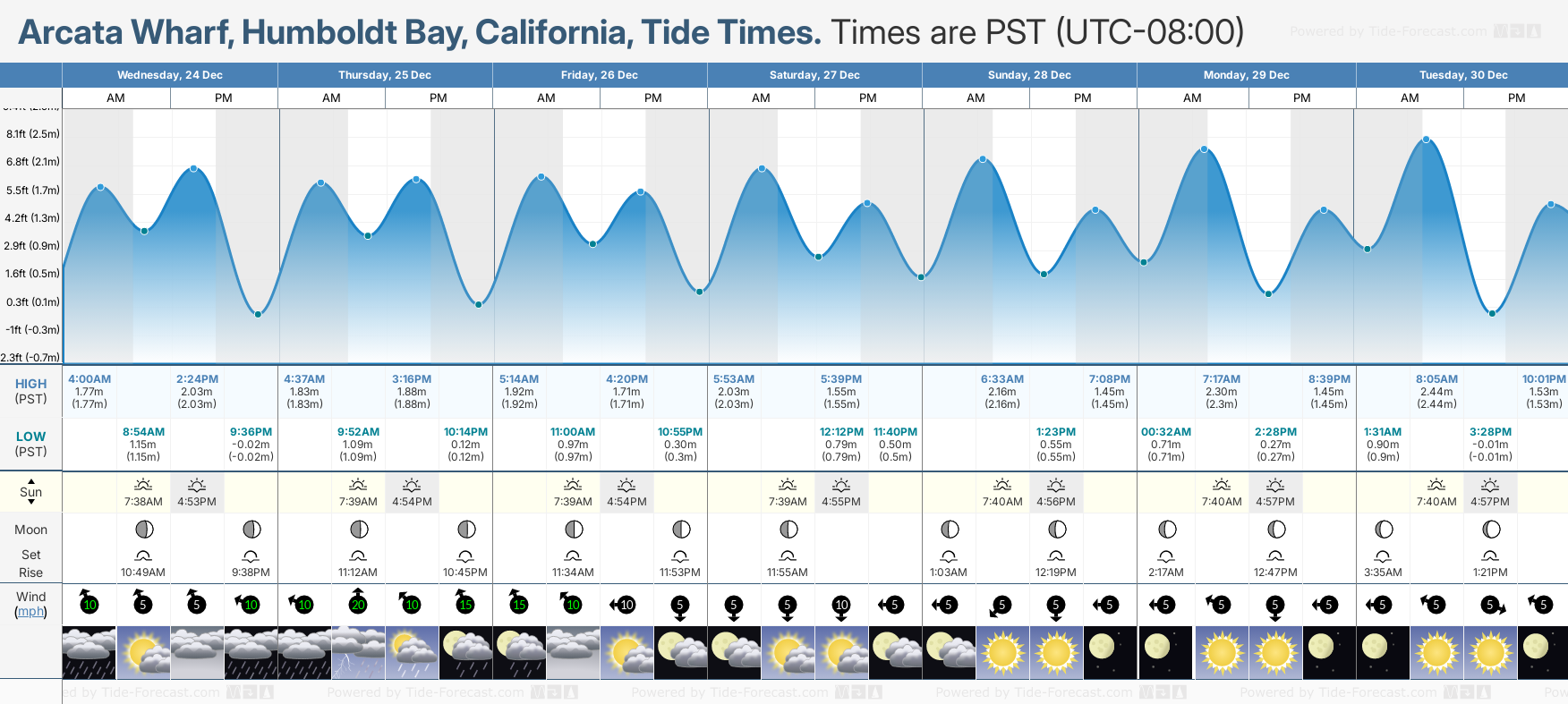 NOTE: Use of this site for Arcata Wharf, Humboldt Bay, California tide times is subject to our terms.