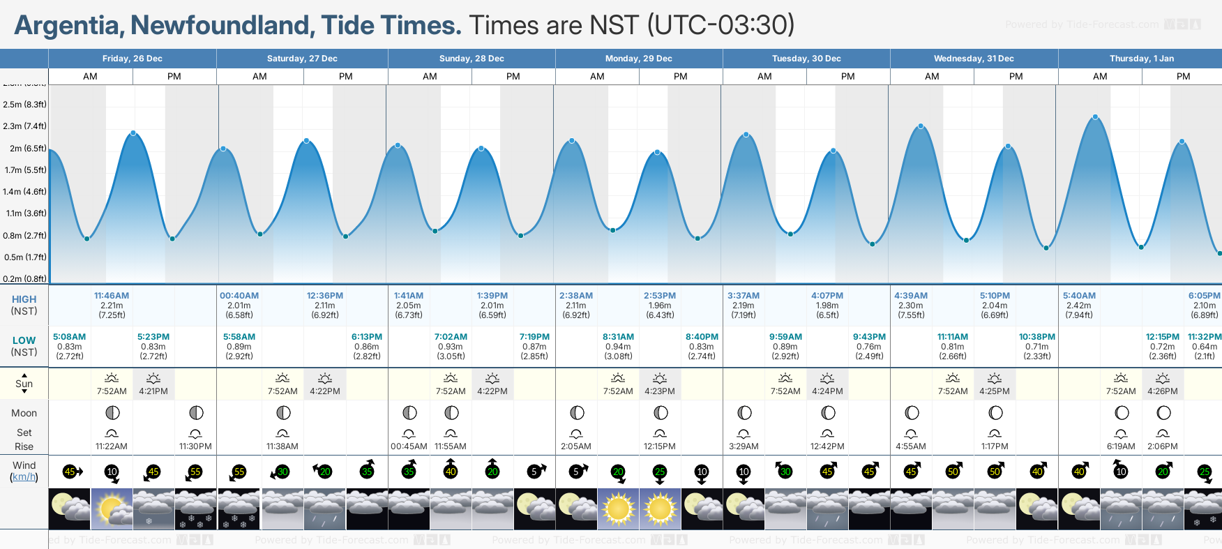 Tide Times for Argentia (tomorrow): Friday 26 December 2025