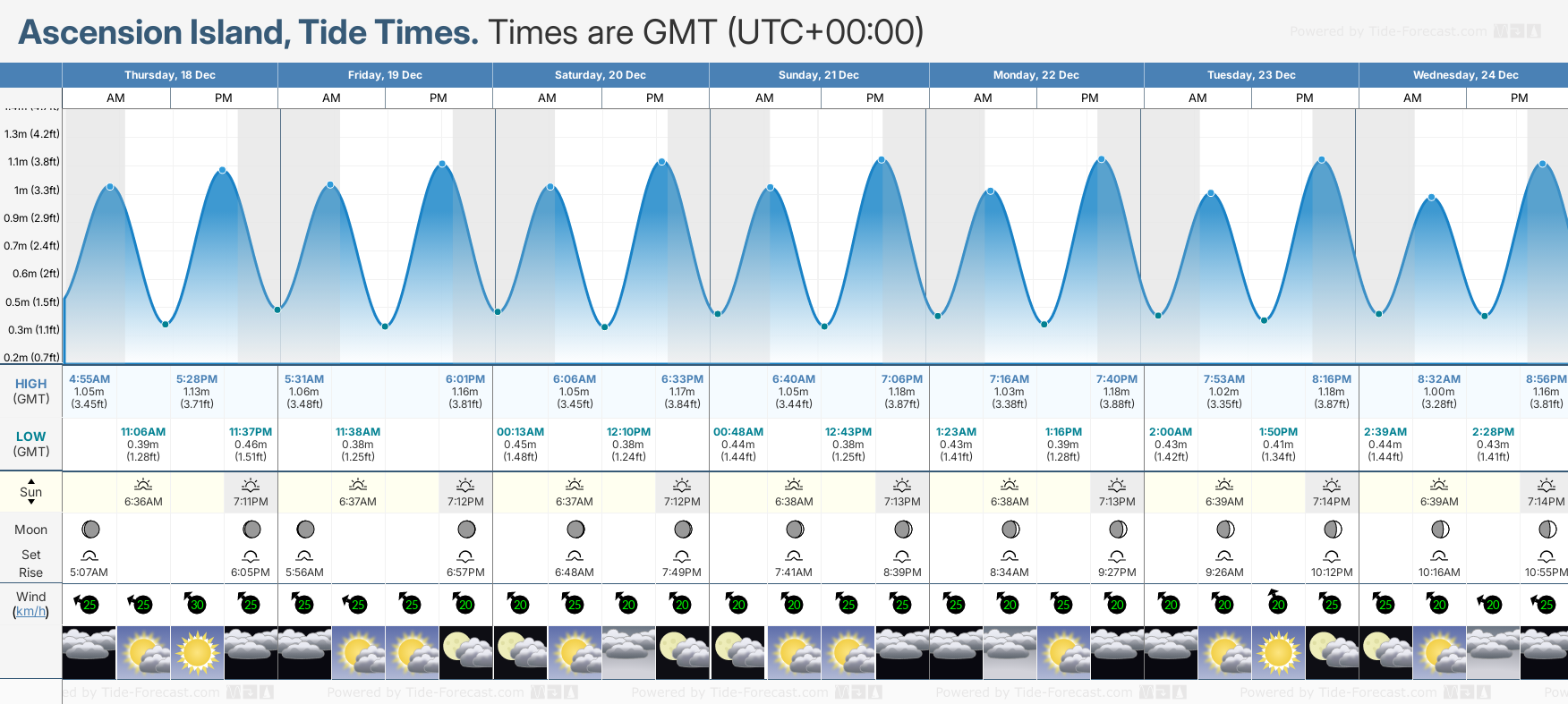 Tide Times for Ascension Island: Sunday 21 December 2025