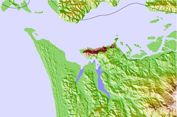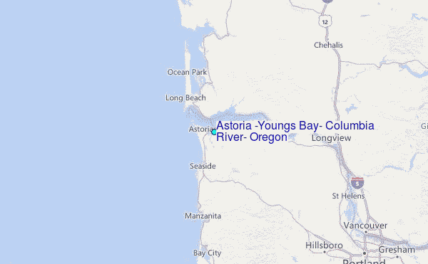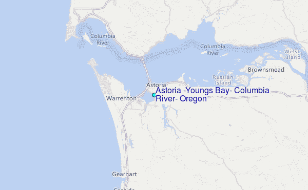 Use this relief map to navigate to tide stations, surf breaks and cities that are in the area of Astoria (Youngs Bay), Columbia River, Oregon.