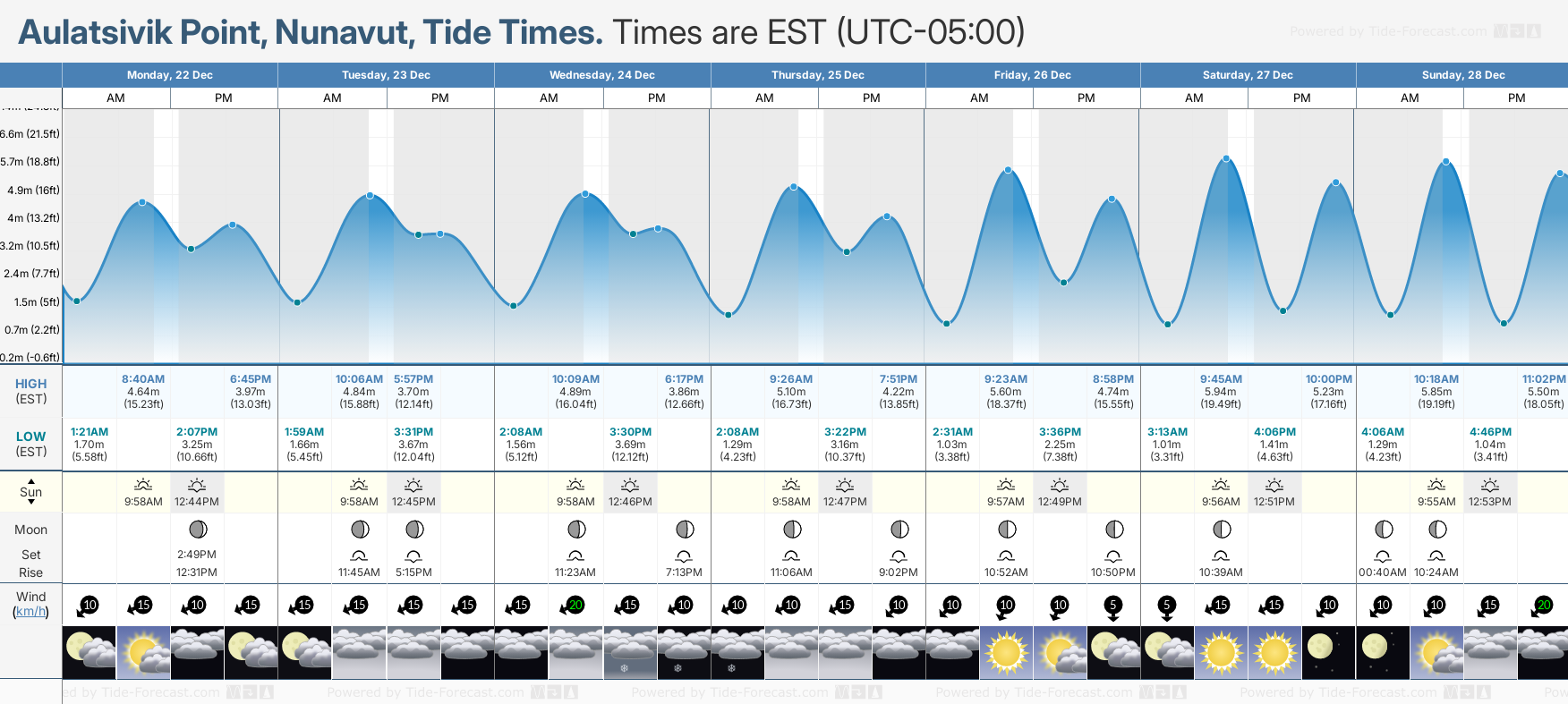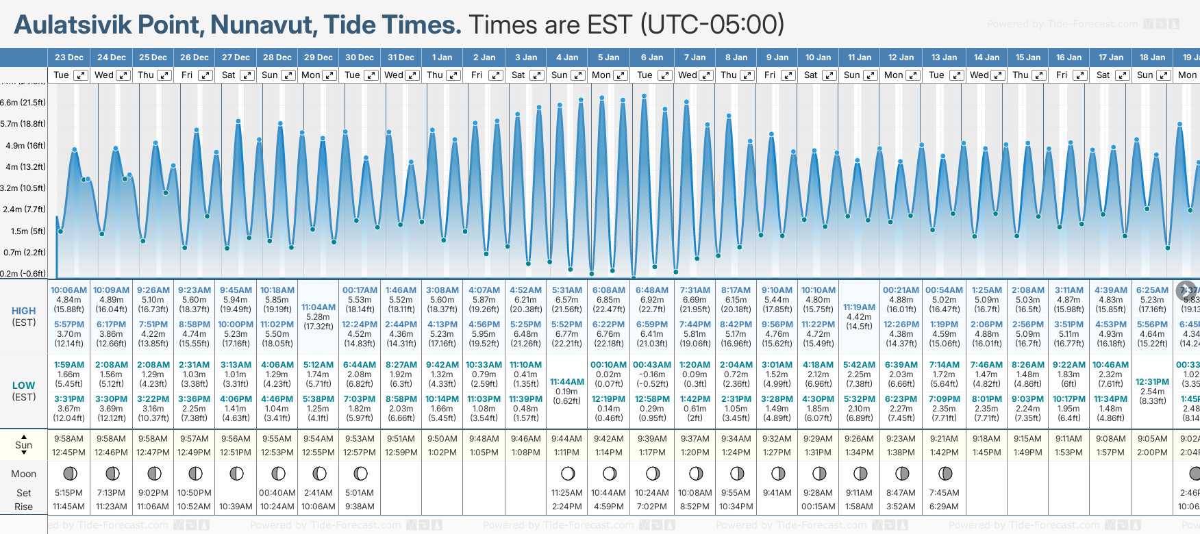 December and January Tide charts for Aulatsivik Point: The tide charts below show the height, time and date of high and low tides for the next 30 days.