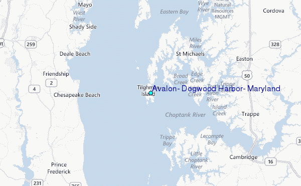 Other Nearby Locations' tide tables and tide charts to Avalon, Dogwood Harbor, Maryland: