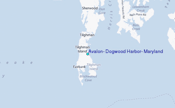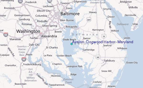 Use this relief map to navigate to tide stations, surf breaks and cities that are in the area of Avalon, Dogwood Harbor, Maryland.