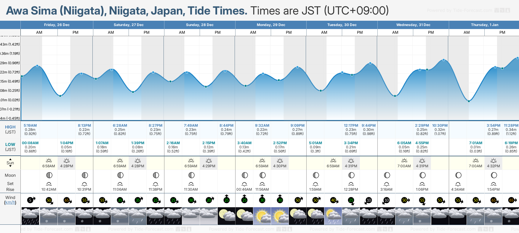 Tide Times for Awa Sima (Niigata): Sunday 28 December 2025