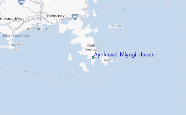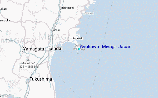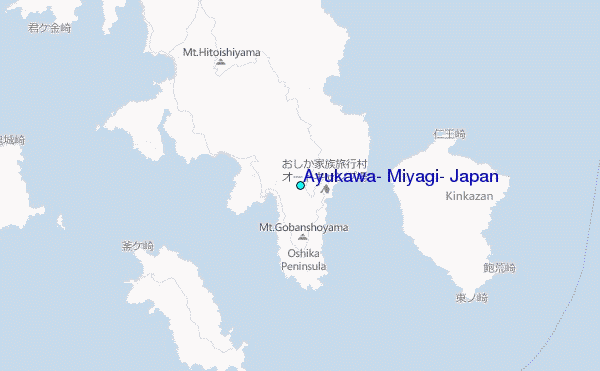 Use this relief map to navigate to tide stations, surf breaks and cities that are in the area of Ayukawa, Miyagi, Japan.