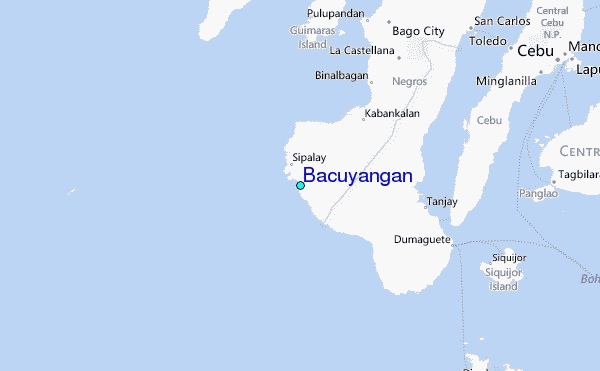 Use this relief map to navigate to tide stations, surf breaks and cities that are in the area of Bacuyangan.