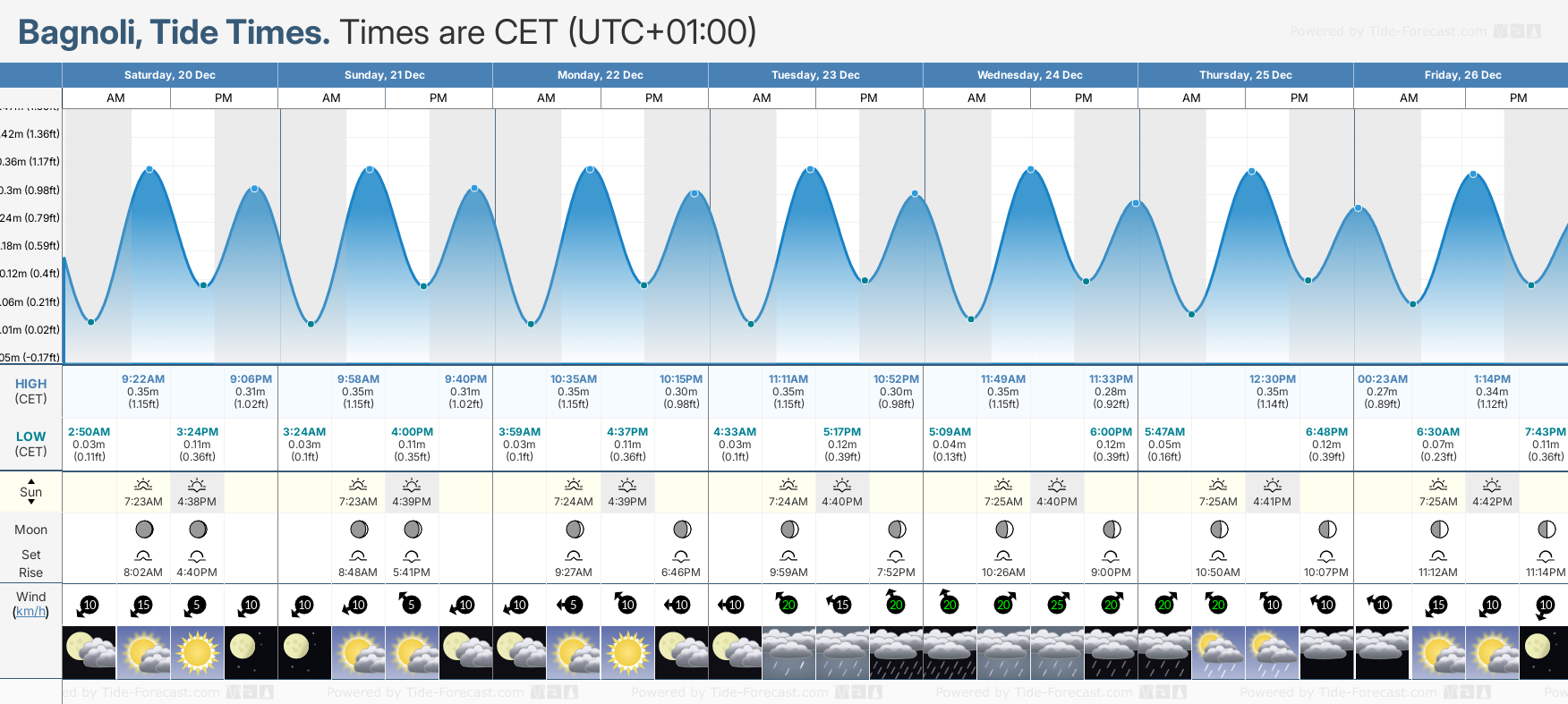 Tide Times for Bagnoli (tomorrow): Saturday 20 December 2025