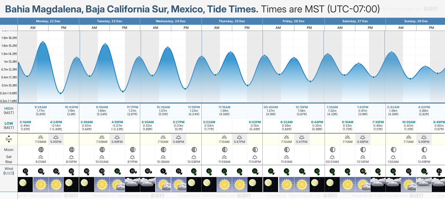 NOTE: Use of this site for Bahia Magdalena, Baja California Sur, Mexico tide times is subject to our terms.