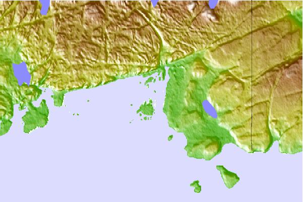Use this relief map to navigate to tide stations, surf breaks and cities that are in the area of Baie De Brador, Quebec.