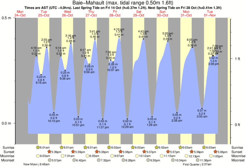 Tide chart for Baie-MahaultShowing low and high tide times for the next 30 days at Baie-Mahault. Tide Times are AST (UTC -4.0hrs).