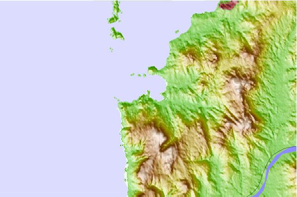 Use this relief map to navigate to tide stations, surf breaks and cities that are in the area of Baiona.