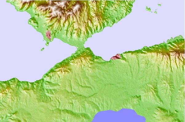 Use this relief map to navigate to tide stations, surf breaks and cities that are in the area of Bandırma.