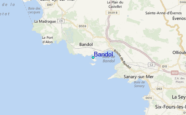 Use this relief map to navigate to tide stations, surf breaks and cities that are in the area of Bandol.