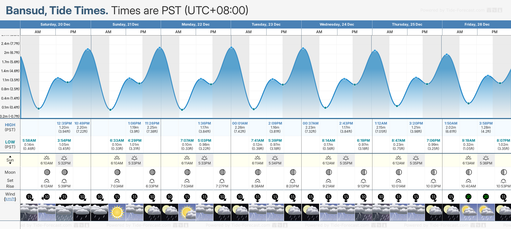 | High Tide | 10:49 PM(Sat 20 December) | 7.22 ft (2.2 m) |