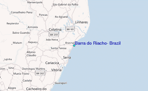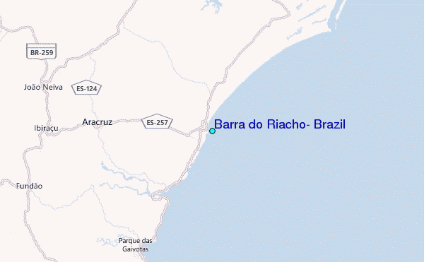 Use this relief map to navigate to tide stations, surf breaks and cities that are in the area of Barra do Riacho, Brazil.