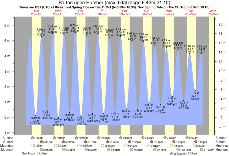 December and January Tide charts for Barton upon Humber: The tide charts below show the height, time and date of high and low tides for the next 30 days.