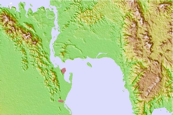 Use this relief map to navigate to tide stations, surf breaks and cities that are in the area of Basey.