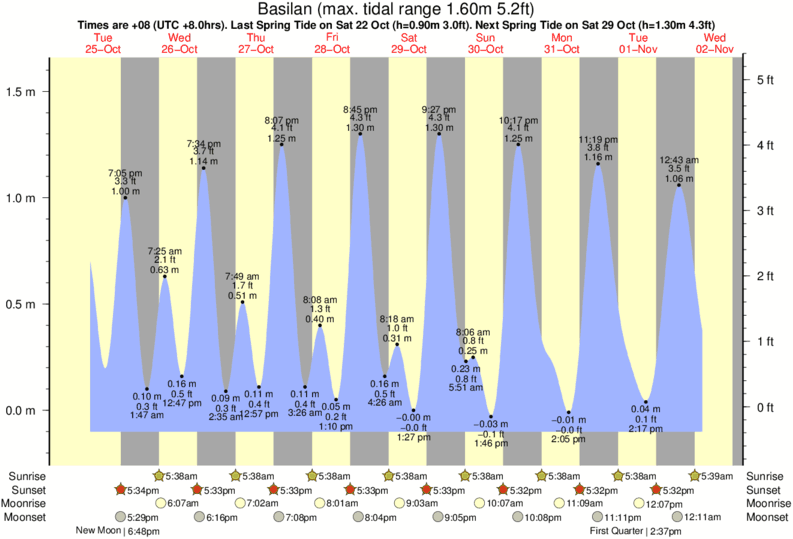 Tide Times are PST (UTC +8.0hrs). Last Spring High Tide at Basilan was on Sun 07 Dec (height: 1.47m 4.8ft). Next high Spring Tide at Basilan will be on Tue 23 Dec (height: 1.26m 4.1ft).