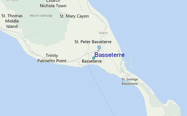 Use this relief map to navigate to tide stations, surf breaks and cities that are in the area of Basseterre.