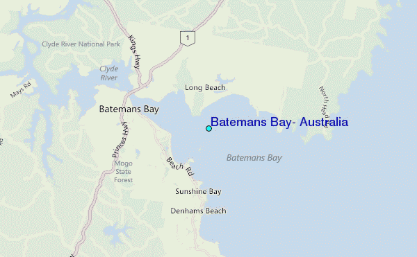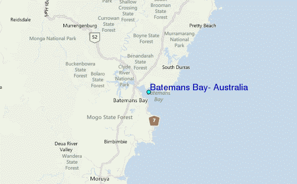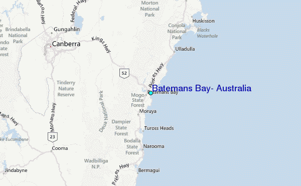 Use this relief map to navigate to tide stations, surf breaks and cities that are in the area of Batemans Bay, Australia.