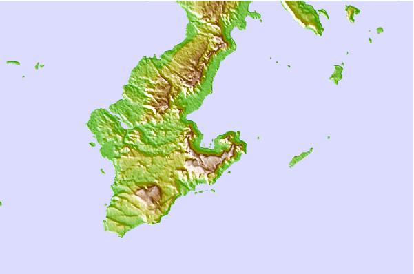 Use this relief map to navigate to tide stations, surf breaks and cities that are in the area of Baten, Okinawa, Japan.