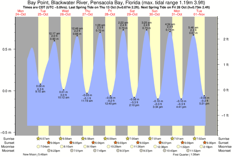 Tide chart for Bay Point, Blackwater River, Pensacola BayShowing low and high tide times for the next 30 days at Bay Point, Blackwater River, Pensacola Bay. Tide Times are CST (UTC -6.0hrs).