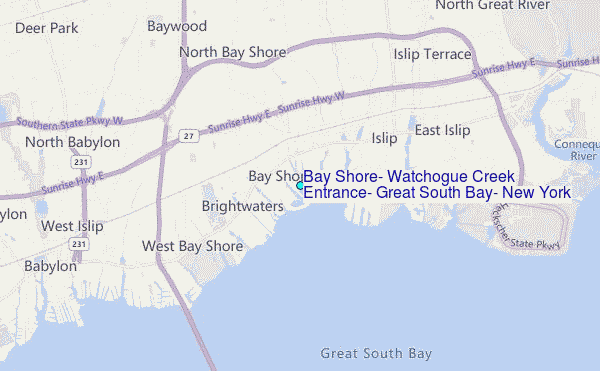 Choose Bay Shore, Watchogue Creek Entrance, Great South Bay, New York Location Map Zoom: