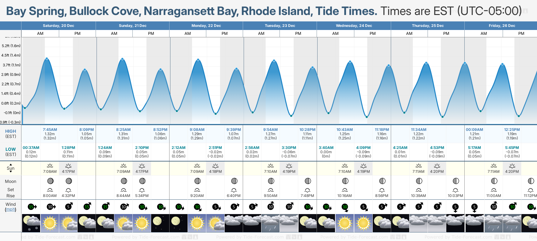 Tide Times for Bay Spring, Bullock Cove, Narragansett Bay (tomorrow): Sunday 21 December 2025